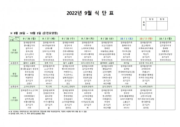 9월 다섯째주 식단표 페이지 정보 작성자 은천노인복지회 작성일22-09-22 17:36 조회96,393회 댓글0건 관련링크 이전글 다음글 목록 답변 본문 . 이전글 다음글 목록 답변