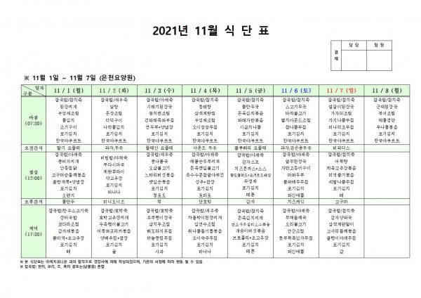11월 첫째주 식단표 페이지 정보 작성자 은천노인복지회 작성일21-10-28 16:55 조회126,447회 댓글0건 관련링크 이전글 다음글 목록 답변 본문 . 이전글 다음글 목록 답변