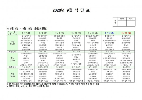 9월 둘째주 식단표 페이지 정보 작성자 은천노인복지회 작성일20-09-14 15:35 조회162,661회 댓글0건 관련링크 이전글 다음글 목록 답변 본문 . 이전글 다음글 목록 답변