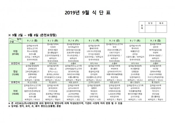 9월 첫째주 식단표 페이지 정보 작성자 은천노인복지회 작성일19-09-09 14:48 조회197,191회 댓글0건 관련링크 이전글 다음글 목록 답변 본문 9월 첫째주 식단표 이전글 다음글 목록 답변
