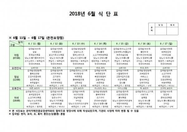 6월 셋째주 식단표 페이지 정보 작성자 은천노인복지회 작성일18-06-18 10:47 조회209,534회 댓글0건 관련링크 이전글 다음글 목록 답변 본문 6월 셋째주 식단표 이전글 다음글 목록 답변