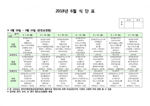 6월 넷째주 식단표 페이지 정보 작성자 은천노인복지회 작성일18-06-25 11:11 조회210,933회 댓글0건 관련링크 이전글 다음글 목록 답변 본문 6월 넷째주 식단표 이전글 다음글 목록 답변