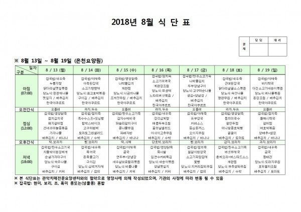 8월 셋째주 식단표 페이지 정보 작성자 은천노인복지회 작성일18-08-27 09:47 조회207,944회 댓글0건 관련링크 이전글 다음글 목록 답변 본문 8월 셋째주 식단표 이전글 다음글 목록 답변