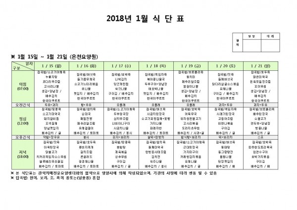 1월 셋째주 식단표 페이지 정보 작성자 은천노인복지회 작성일18-01-17 15:16 조회195,013회 댓글0건 관련링크 이전글 다음글 목록 답변 본문 1월 셋째주 식단표 이전글 다음글 목록 답변