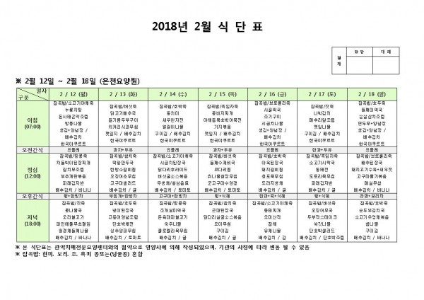2월 둘째주 식단표 페이지 정보 작성자 은천노인복지회 작성일18-02-12 11:15 조회196,574회 댓글0건 관련링크 이전글 다음글 목록 답변 본문 2월 둘째주 식단표 이전글 다음글 목록 답변