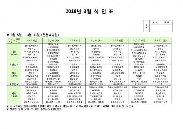 3월 둘째주 식단표 페이지 정보 작성자 은천노인복지회 작성일18-03-05 16:27 조회197,611회 댓글0건 관련링크 이전글 다음글 목록 답변 본문 3월 둘째주 식단표 이전글 다음글 목록 답변
