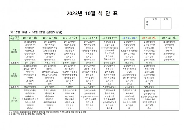 10월 셋째주 식단표 페이지 정보 작성자 은천노인복지회 작성일23-10-12 17:24 조회39,640회 댓글0건 관련링크 이전글 다음글 목록 답변 본문 . 이전글 다음글 목록 답변