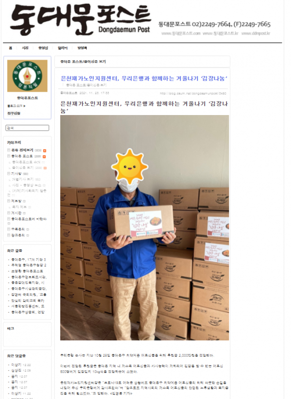 동대문포스트 김장기사 페이지 정보 작성자 은천노인복지회 작성일21-12-29 17:25 조회9,344회 댓글0건 관련링크 https://blog.daum.net/dongdaemunpost/3480 5544회 연결 목록 답변 본문 동대문포스트에 김장나눔 행사 기사입니다~ 목록 답변