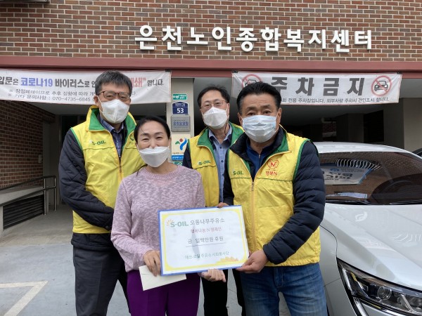 S-OIL 오동나무주유소 후원금 전달식 페이지 정보 작성자 은천노인복지회 작성일20-10-29 13:23 조회26,478회 댓글0건 관련링크 이전글 다음글 목록 답변 본문 동대문구 장안동 인근에 있는 S-OIL 오동나무주유소에서 후원금을 전달해 주셨습니다. 이전글 다음글 목록 답변