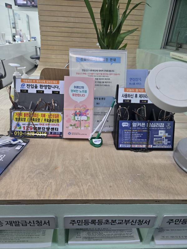 사각지대에 놓인 독거 어르신이 발생하지 않도록 관내 주민센터를 방문하여 기관 소식지를 비치하는 홍보활동을 진행하였습니다.