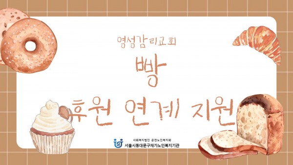 [재가노인지원서비스] 2026년 3월 영성감리교회(빵) 후원 페이지 정보 작성자 은천노인복지회 작성일26-04-06 11:18 조회15회 댓글0건 관련링크 이전글 다음글 목록 답변 본문 기관 인근에 위치한 '영성감리교회'에서 빵(단팥, 소보로, 완두앙금) 200개를 후원해주셨습니다. 이전글 다음글 목록 답변