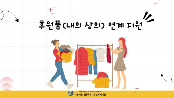 [재가노인지원서비스] 2026년 3월 서울시재가노인복지협회(내의 상의) 후원 페이지 정보 작성자 은천노인복지회 작성일26-04-06 11:34 조회42회 댓글0건 관련링크 다음글 목록 답변 본문 '서울시재가노인복지협회'로부터 내의 상의를 후원받았으며,올 겨울 이용자들이 따듯하게 보내실 수 있도록 전달드렸습니다. 다음글 목록 답변