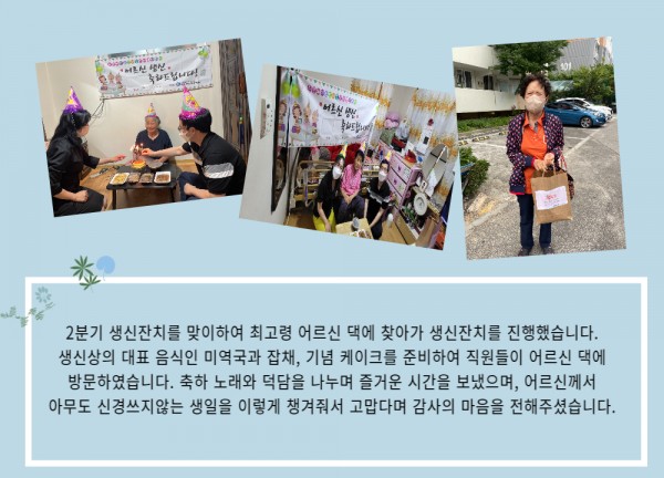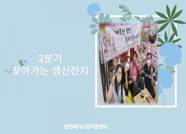 [재가노인지원서비스] 2분기 찾아가는 생신잔치 페이지 정보 작성자 은천노인복지회 작성일22-07-06 13:26 조회18,545회 댓글0건 관련링크 이전글 다음글 목록 답변 본문 2분기 찾아가는 생신잔치 이전글 다음글 목록 답변