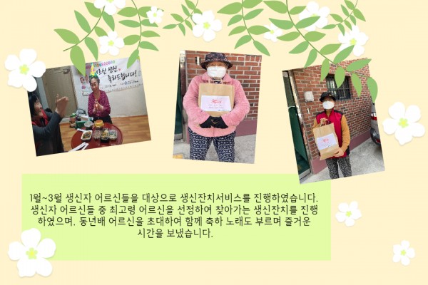 [재가노인지원서비스] 1분기 생신잔치 페이지 정보 작성자 은천노인복지회 작성일22-03-30 14:03 조회19,387회 댓글0건 관련링크 이전글 다음글 목록 답변 본문 1분기 생신잔치 이전글 다음글 목록 답변