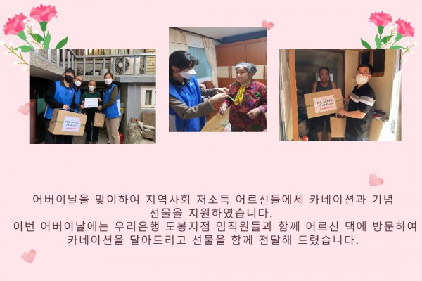 [재가노인지원] 어버이날 기념 '어르신, 사랑해 孝!' 페이지 정보 작성자 은천노인복지회 작성일22-06-03 17:17 조회18,696회 댓글0건 관련링크 이전글 다음글 목록 답변 본문 2022년 어버이날 기념 행사 이전글 다음글 목록 답변