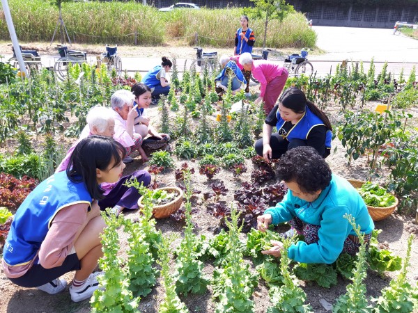 [특화프로그램]해성컨벤션고등학교와 함께하는 텃밭가꾸지 페이지 정보 작성자 은천노인복지회 작성일17-06-14 18:08 조회8,165회 댓글0건 관련링크 이전글 목록 답변 본문 중랑천 텃밭에서 해성국제컨벤션고 학생들과 함께 상추를 뜯어왔습니다. 뜯어온 상추는 저녁식사때 어르신들 모두 나누어 드셨습니다. 이전글 목록 답변